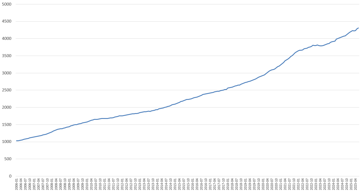 이는 M2통화량의 증가와 거의 비슷하며, 선호를 받는 아파트는 인플레를 반영함을 볼 수 있다.