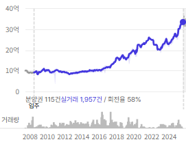 2008년에 9억이던 가격이, 2018년에 16억, 2022년에는 약 25억원을 형성하고 있다.