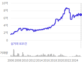 이후 2013년에 저점을 찍고 상승전환하여 꾸준히 상승하는 모습을 보인다.