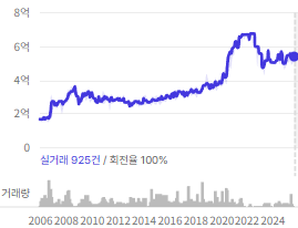 2008년에 3억이던 가격이, 2018년에는 5.4억, 2022년에는 약 8.8억을 형성한다.