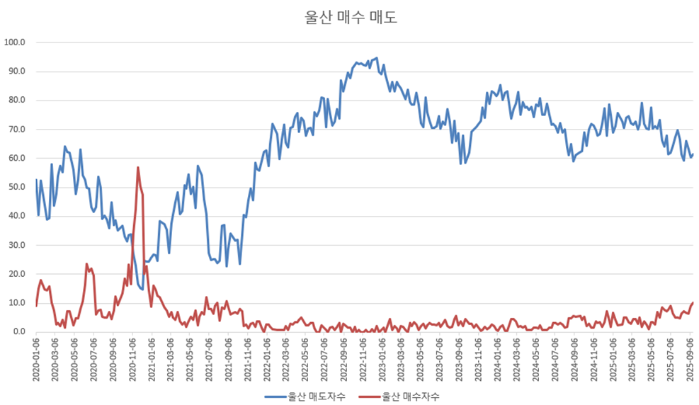 광역시 중 유일하게 매수심리가 움직이는 곳이다.