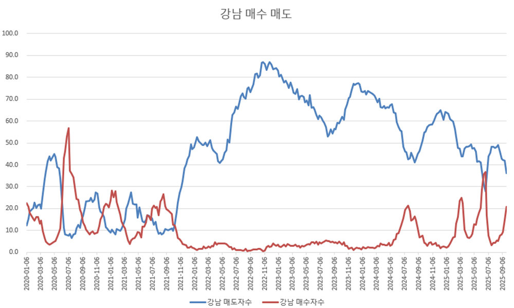 ※서울 강북지역보다 좀 더 가파른 매수심리의 증가가 흥미롭다.