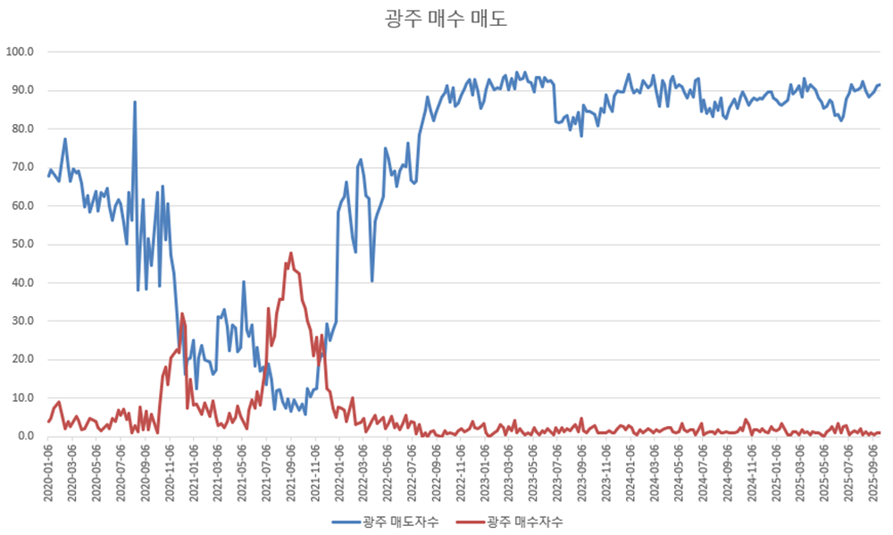 광역시 중에서는 거의 유일하게 의미있는 매수, 매도심리를 보여주는 곳이지만,