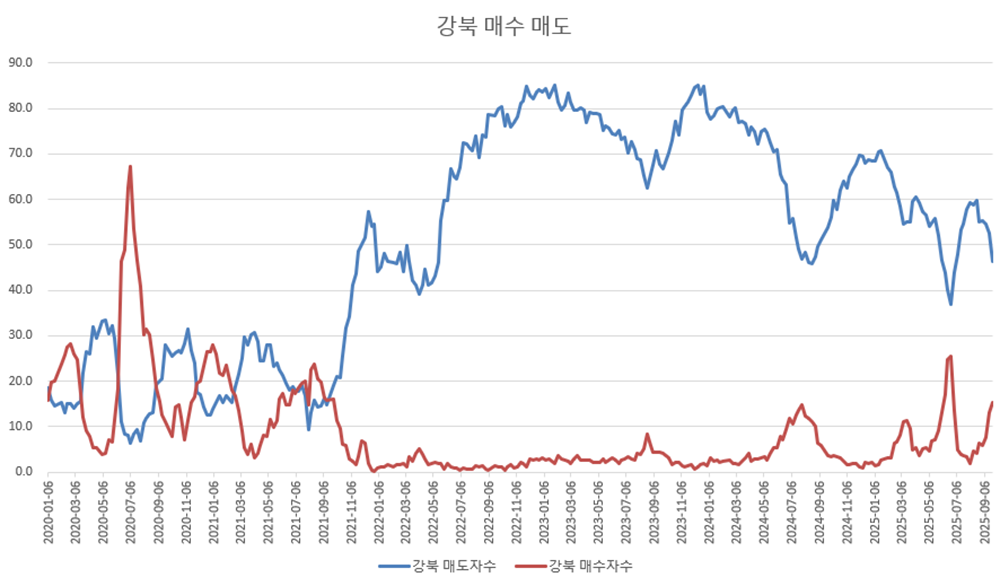 강북의 경우도 매도 우위 시장으로 가고 있다.