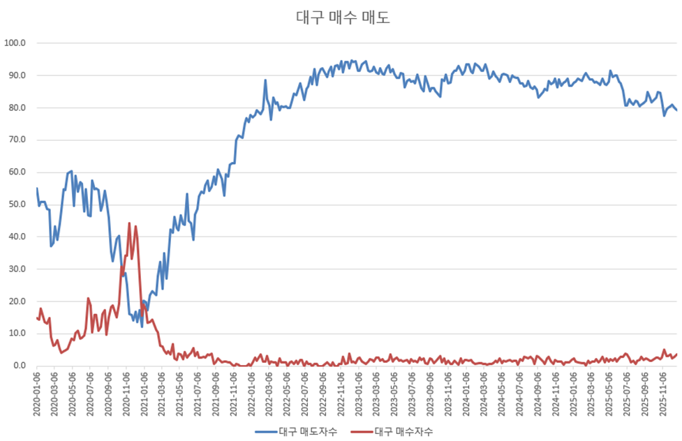 광주는 심리가 참 잠잠하다. 아무래도 26년에도 공급이 꽤나 있기 때문에, 광주에 반등이 오기까지는 시간이 꽤 걸릴 수 있다.