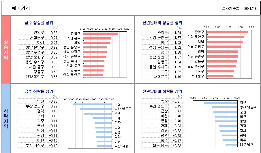 - 서울 매매 상승 Top3 : 관악구(0.96), 서대문구(0.77), 중구(0.58)