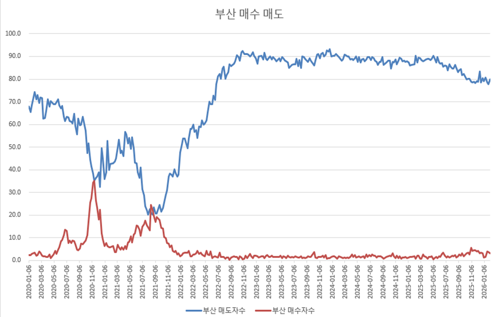사실 지방을 두고 정책이 나온 것은 아니라고 생각하지만, 부산의 경우도 매수세가 약간 줄었고, 매도세가 약간 늘었다.