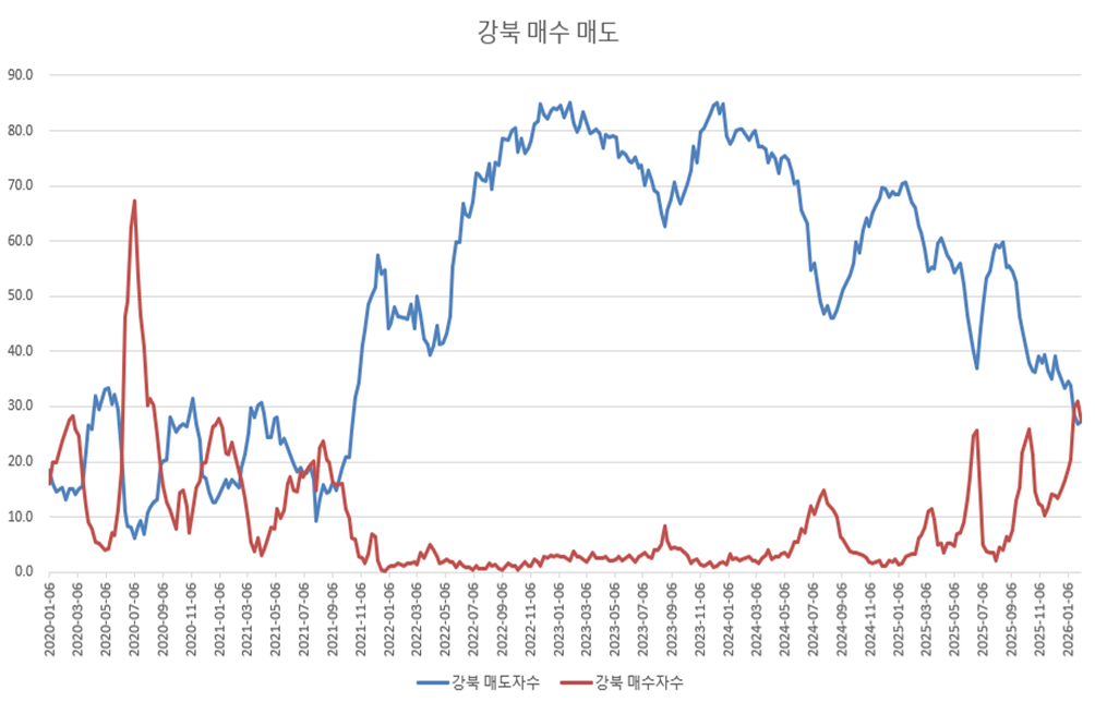 강북의 심리가 강남보다 빠르게 움직이는 것을 볼 수 있었다.