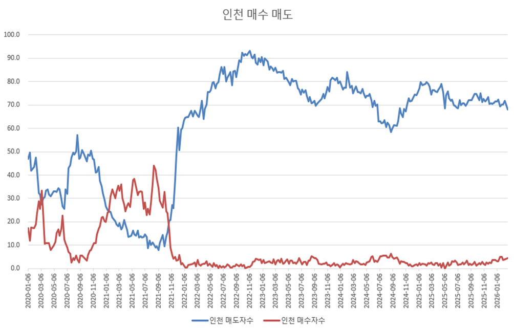 인천의 심리는 큰 변화는 없다. 매수세가 조금씩 우상향 하는 모습이지만 의미가 크진 않은 듯