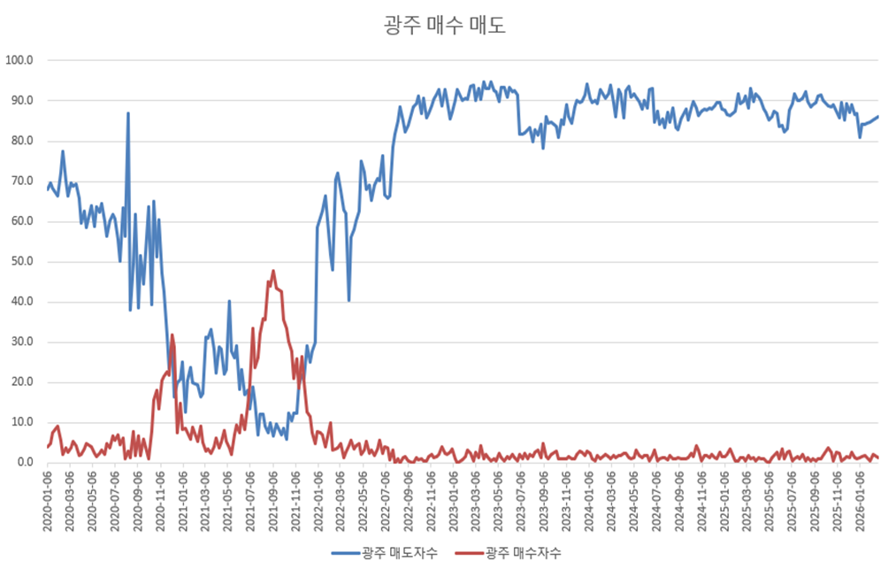 사실 KB 매매지수 자체도 유일하게 하락을 보여주고 있는 곳이 광주광역시다.